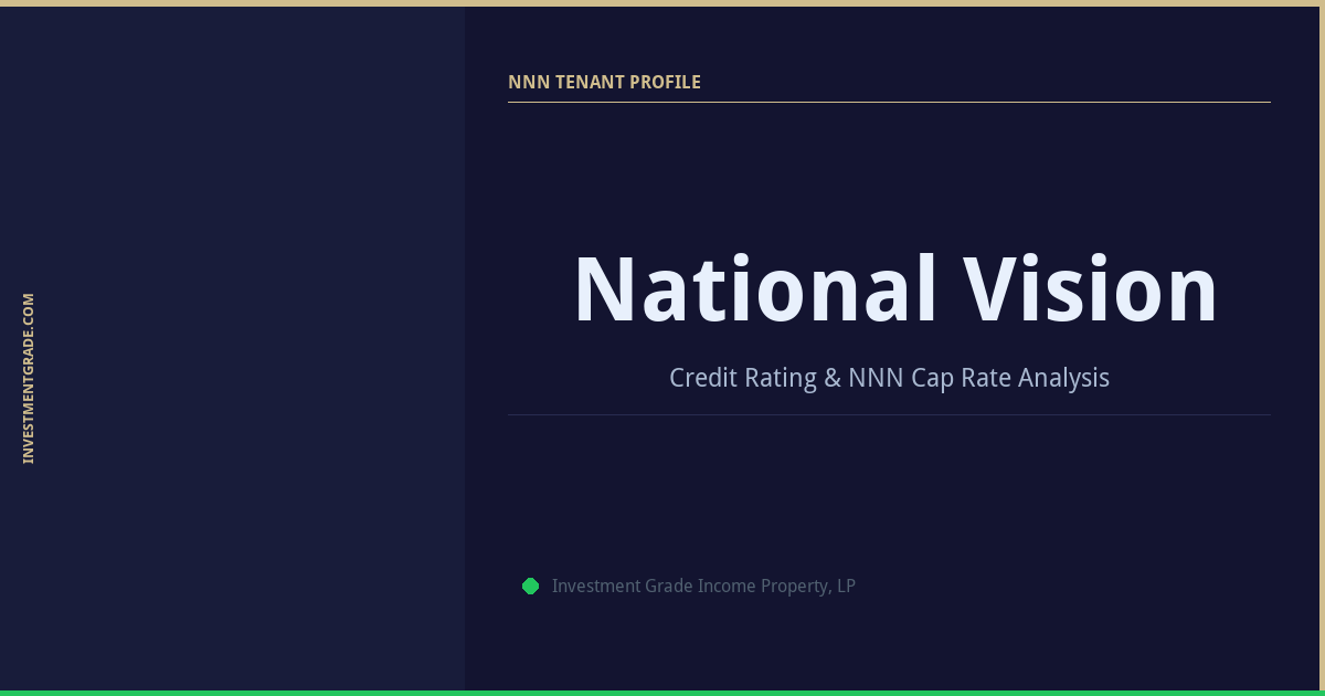 Exit It — Selling a National Vision asset or repositioning through a 1031? Our Capital Markets desk runs a quiet, targeted process. Private investors, family offices, and institutional buyers who are actively acquiring National Vision net lease — not a public blast that signals desperation to the market.